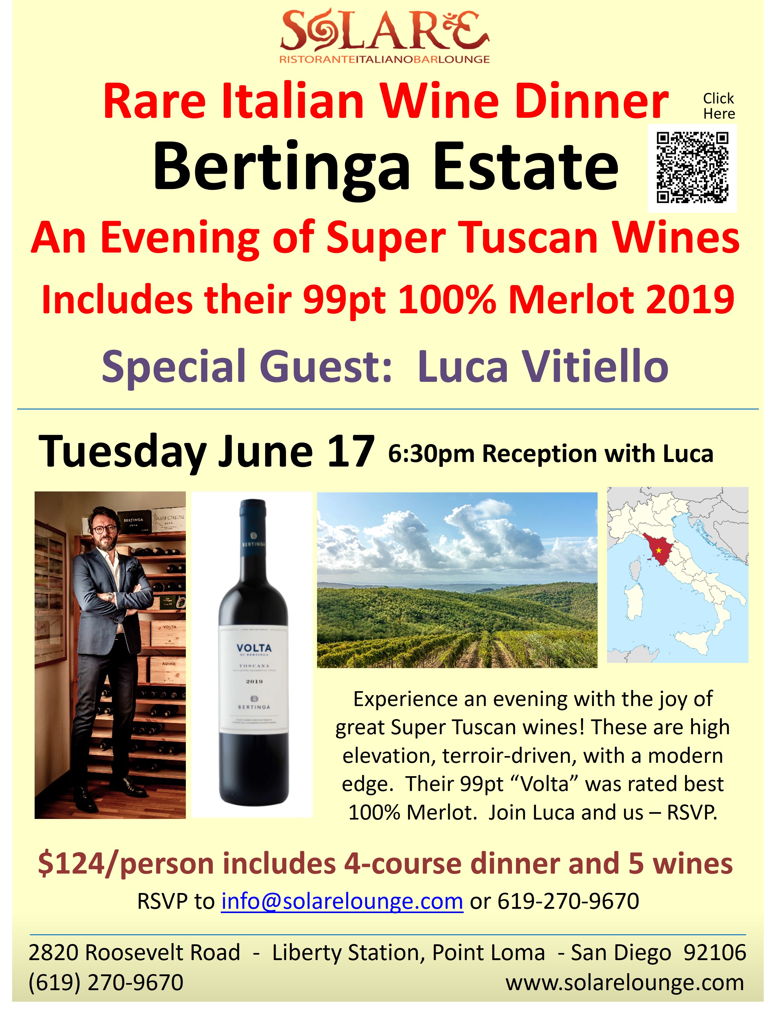 Big Announcement: Luca Pesquero Elia – owner/winemaker of Paitin Wine Estates of Barbaresco, Piemonte, Italy – a legend in Piemonte – is here at Solare Ristorante!